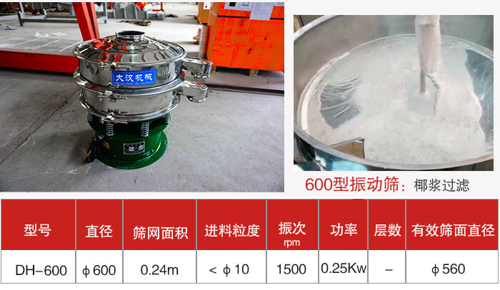 2、600、800mm振動篩:時產(chǎn)量500公斤-1.5t/h,進(jìn)料粒度<Φ10 ,<Φ15,有效篩面直徑560mm,760mm。
