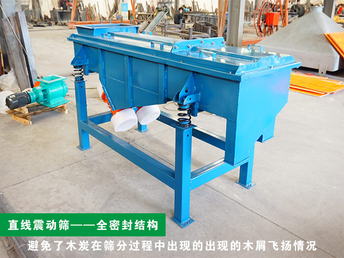 木炭直線振動(dòng)篩整機(jī)全密閉結(jié)構(gòu),避免了木炭在篩分過程中出現(xiàn)的出現(xiàn)的木屑飛揚(yáng)情況,在保證篩分環(huán)境的衛(wèi)生和國家衛(wèi)生標(biāo)準(zhǔn),直線振動(dòng)篩可完全解決木炭在篩分時(shí)對環(huán)境造成的破壞。