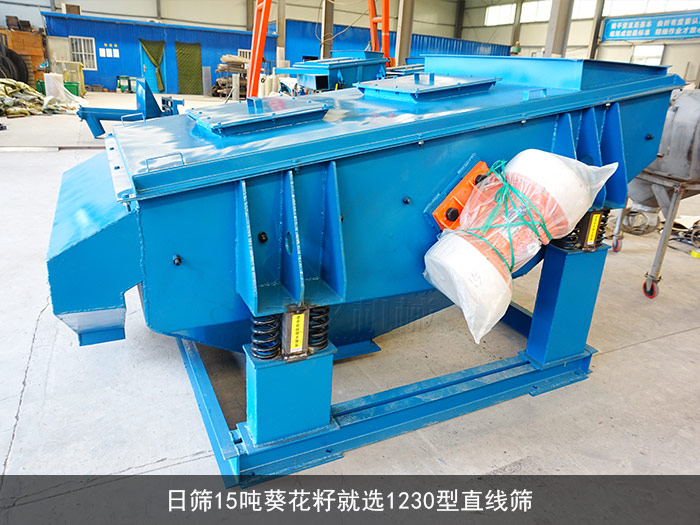 ps.除1230型直線篩外,大漢機械生產(chǎn)的1224型直線篩(2400mm寬x1200mm長)也可以滿足15噸葵花籽的篩分,但是相較于1230型的直線篩還是略遜一籌,但是價格要低500-3200元不等,所以預(yù)算成本不高的用戶,這款設(shè)備也是您不錯的選擇~