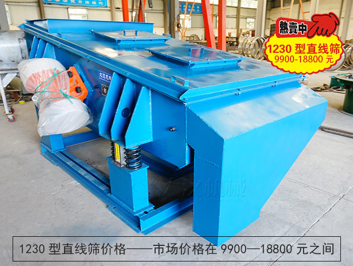 1230型直線篩價格——市場價格在9900—18800元之間,不同的層數(shù)、材質(zhì)、配件也會導(dǎo)致同型號的不同的價格,詳情可咨詢客服獲取(ps.大漢近期在做優(yōu)惠活動,限時8.5-9折,歡迎各位新老用戶前來購機~)