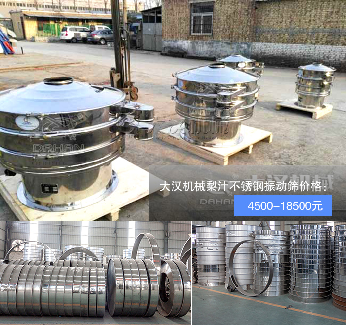 除了以上兩種篩分優(yōu)勢以外,大漢機(jī)械所生產(chǎn)的梨汁過濾不銹鋼振動(dòng)篩的價(jià)格優(yōu)勢,具體如下: