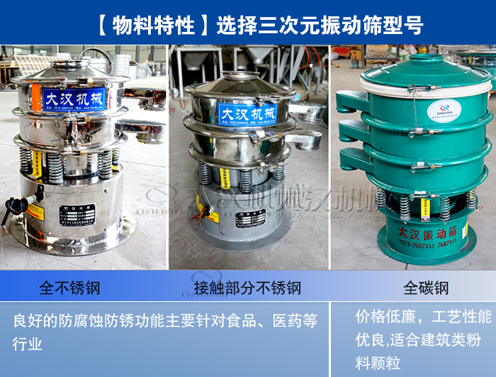 您可根據(jù)物料特性主要是決定您是適用哪種材質的三次元振動篩