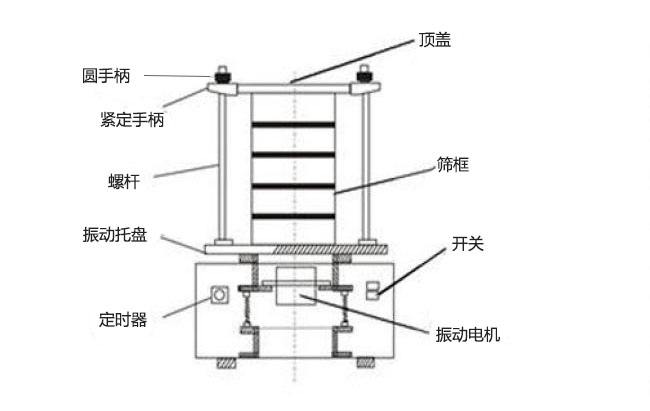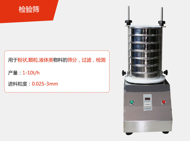 檢驗篩主是以立式振動電機作為整個電機的激振源,通過振動電機帶動上部振動盤振動,再通過振動盤傳導(dǎo)至安放在振動盤上部的篩框上,然后由需要檢測目數(shù)的篩框把小于篩網(wǎng)口孔徑的物料顆粒篩分至下層篩框,如此層層篩選,使每一層檢驗篩內(nèi)只留相同粒度的物料,達到不同粒度的分離并確定此物料的粒度組成,使篩框中的物料能夠達到非常有效的過濾,分級,篩分的目的。